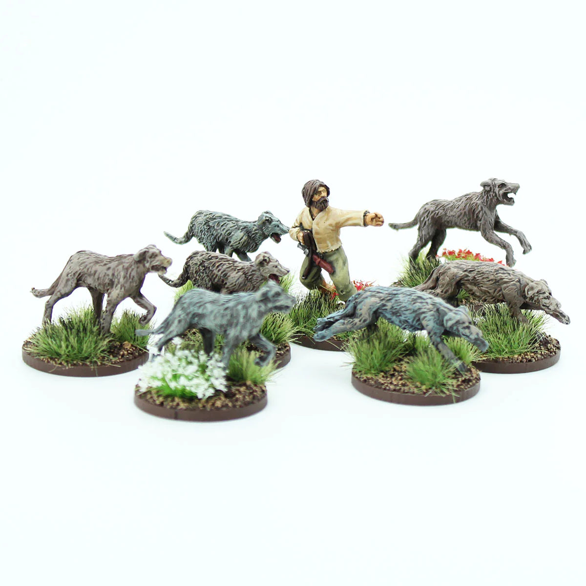 Irish Handler and Warhounds pack contains 8 figures, 1 handler and 7 wolfhounds.
