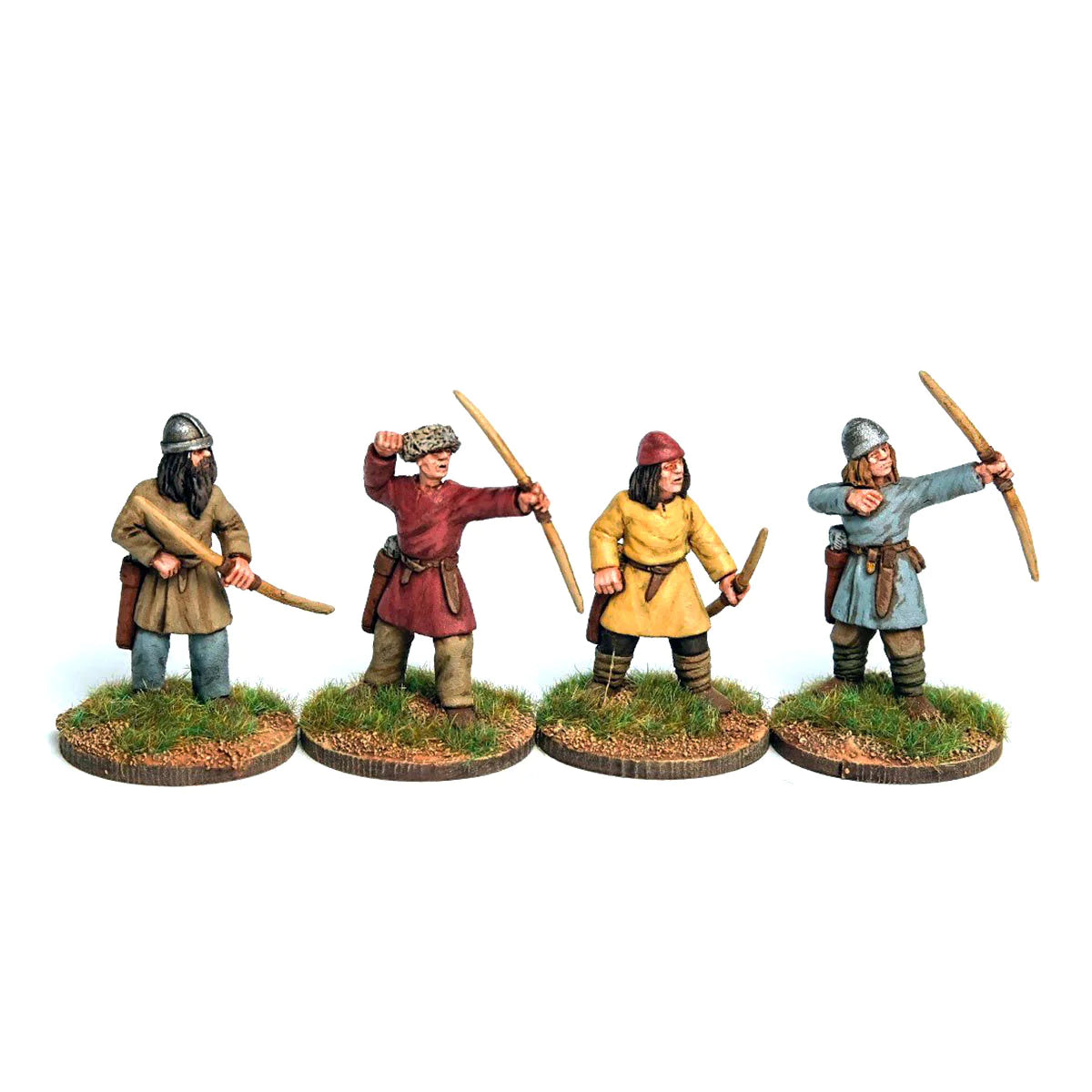 This Bondi, pack contains 4 figures. Miniatures supplied unpainted (separate bows included) and may need some assembly. Weapons and bases supplied. Banner not supplied.