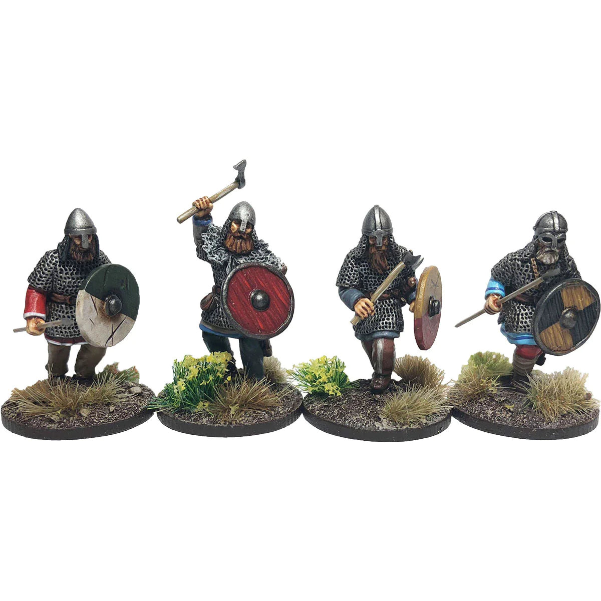 This Hirdmen, pack contains 4 figures. Miniatures supplied unpainted and may need some assembly. Spears, weapons, banners and bases not supplied.