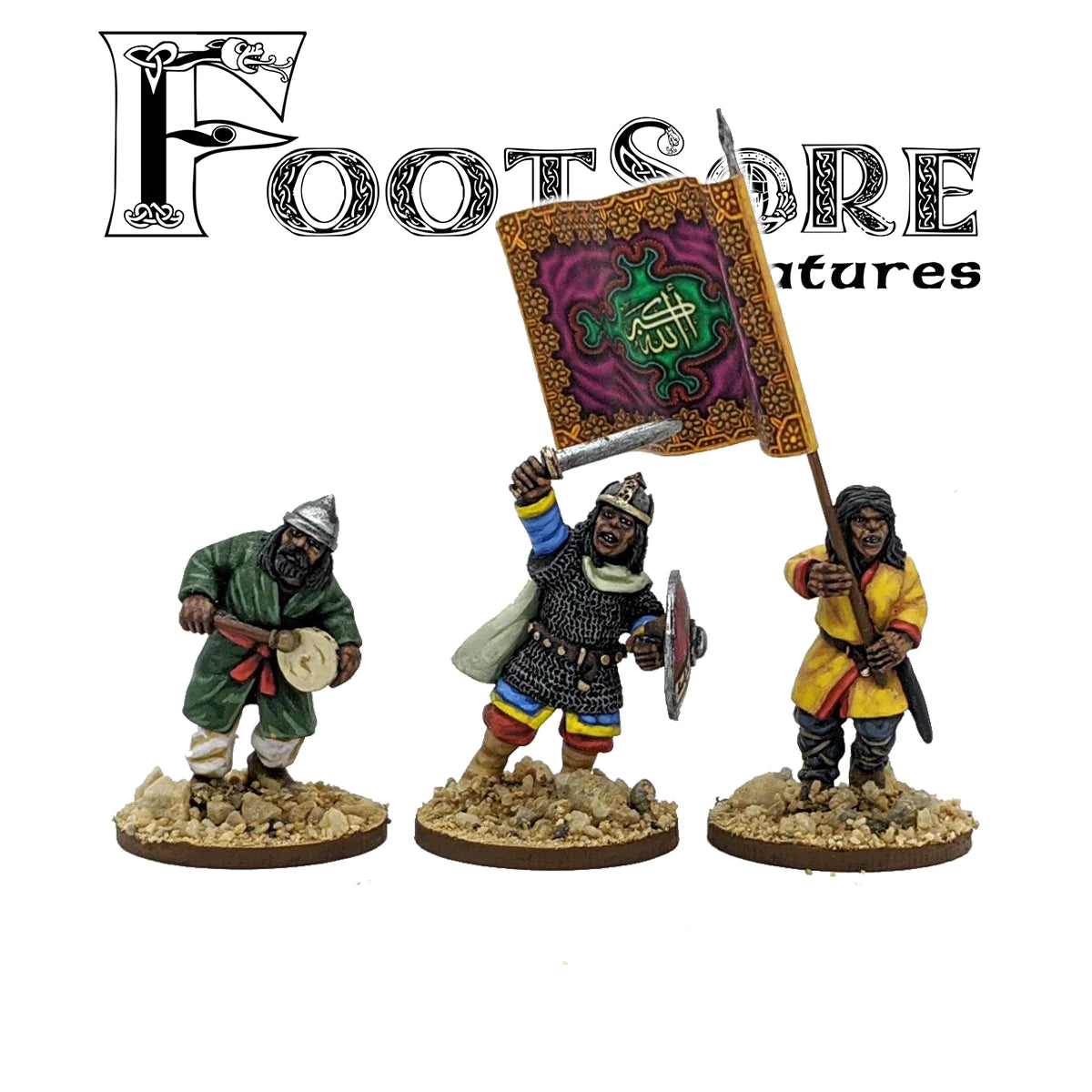 This range is designed to cover the armies of the various Arab Caliphates from the 7th till roughly the 13th Century, although many figures are quite usable beyond this point. Starting with the era of the Prophet in the 7th Century, the armies of Islam swept the whole of the Middle East, North Africa and even into Spain over this period, conquering many lands and people as they did so. Dynasties, or Caliphates were set up across these lands and in turn, eventually swept aside and replaced by rival factions. Arab armies were made up of a huge variety of troop types and no range can hope to possibly cover everything, so if in any doubt as to whether you should use a certain figure for a troop type, your guess is often as good as anyone else. Use what feels right for you.