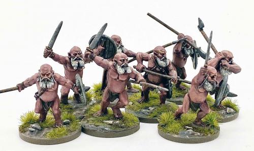 Contains eight SDVR08 Dvergr Beserkers / Hunters - Baldie version (no wolf skins) - Dark Dwarves / Duergar